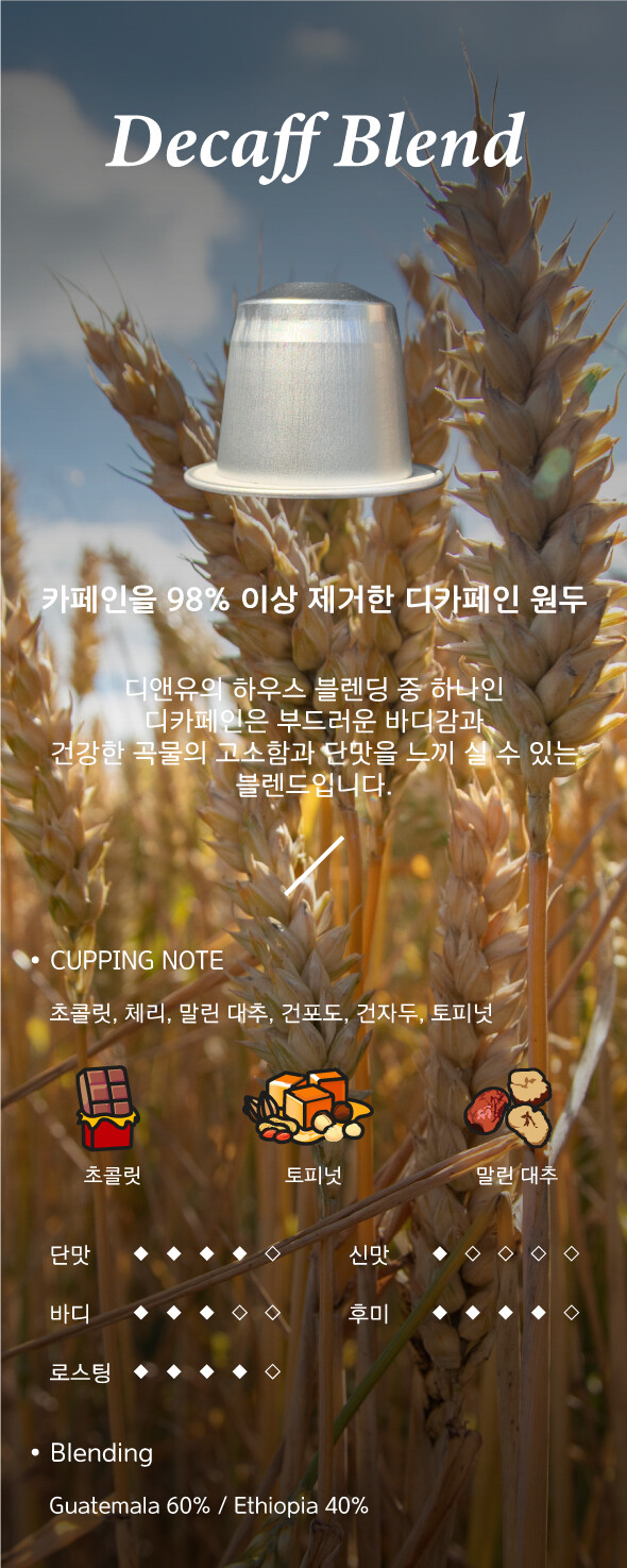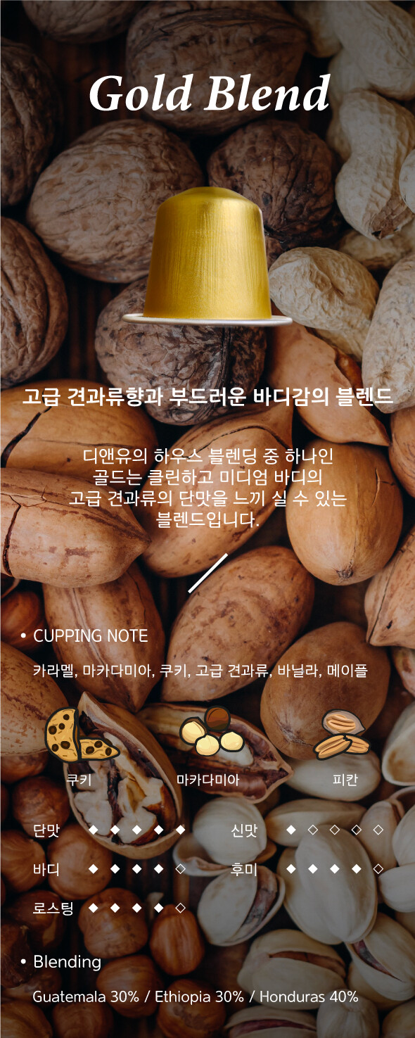 디앤유에서 가장 인기있는 블렌딩 중 하나인 골드와 디카페인을