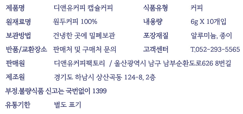 신선하고 품질 좋은 디앤유커피를 이젠 캡슐로 쉽게 즐기세요!
