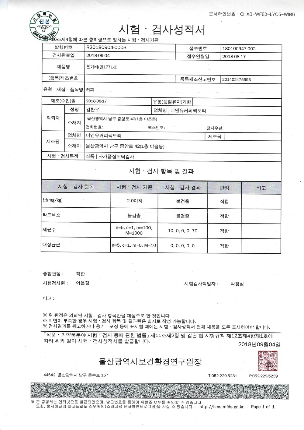식약처기준 시험 검사에 의뢰하고