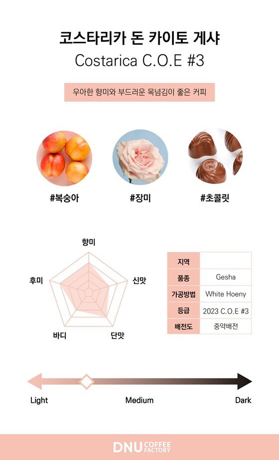 선 주문 후 로스팅 후, 익일 출고를 원칙으로 하며 신선한 원두만을 제공합니다. 디앤유 커피팩토리는 커피의 본질에 집중하며 품질 좋은 커피를 위해 누구보다 섬세하고 까다로운 로스터리를 지향합니다.